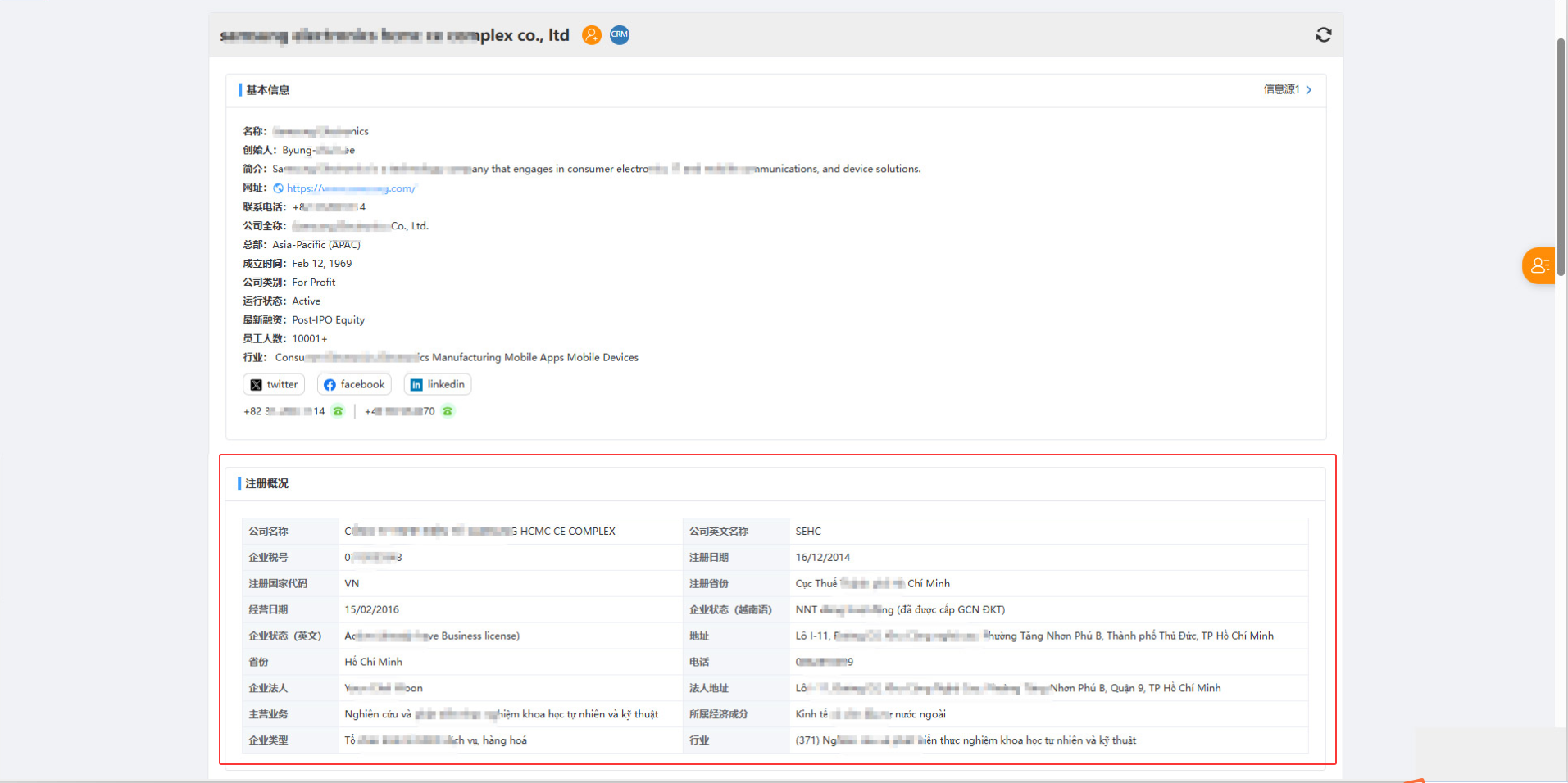 3.越南企业注册信息增加至无界搜,通过无界搜挖掘企业信息,内容更丰富和齐全。如下图所示: