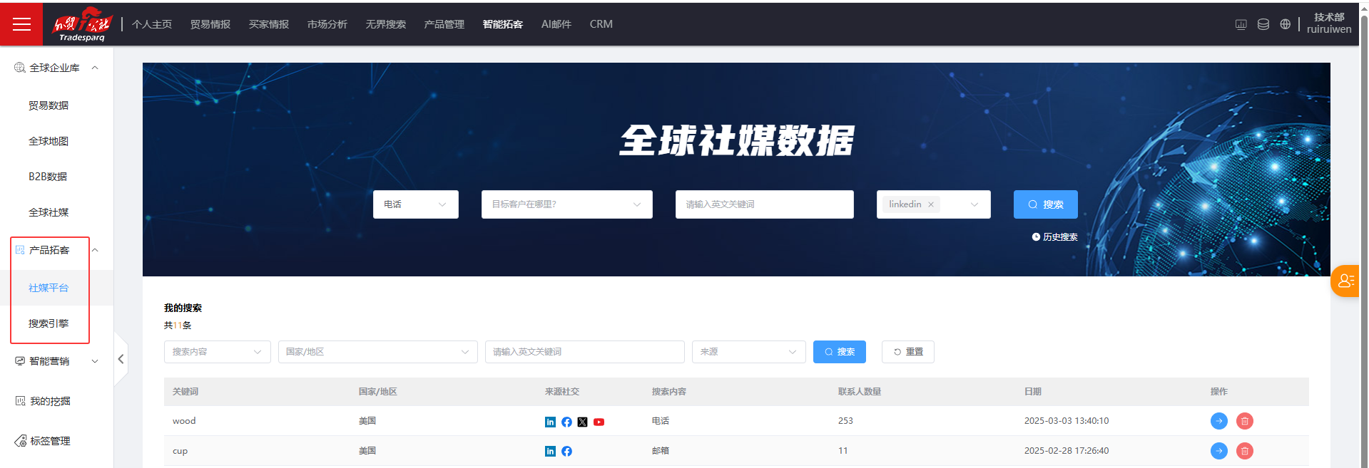 无界搜系统升级+智能拓客模块新增产品拓客(社媒平台和搜索引擎)