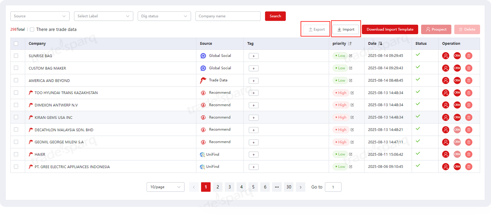 Free-flow data with bulk import + one-click export, supercharging follow-up efficiency.