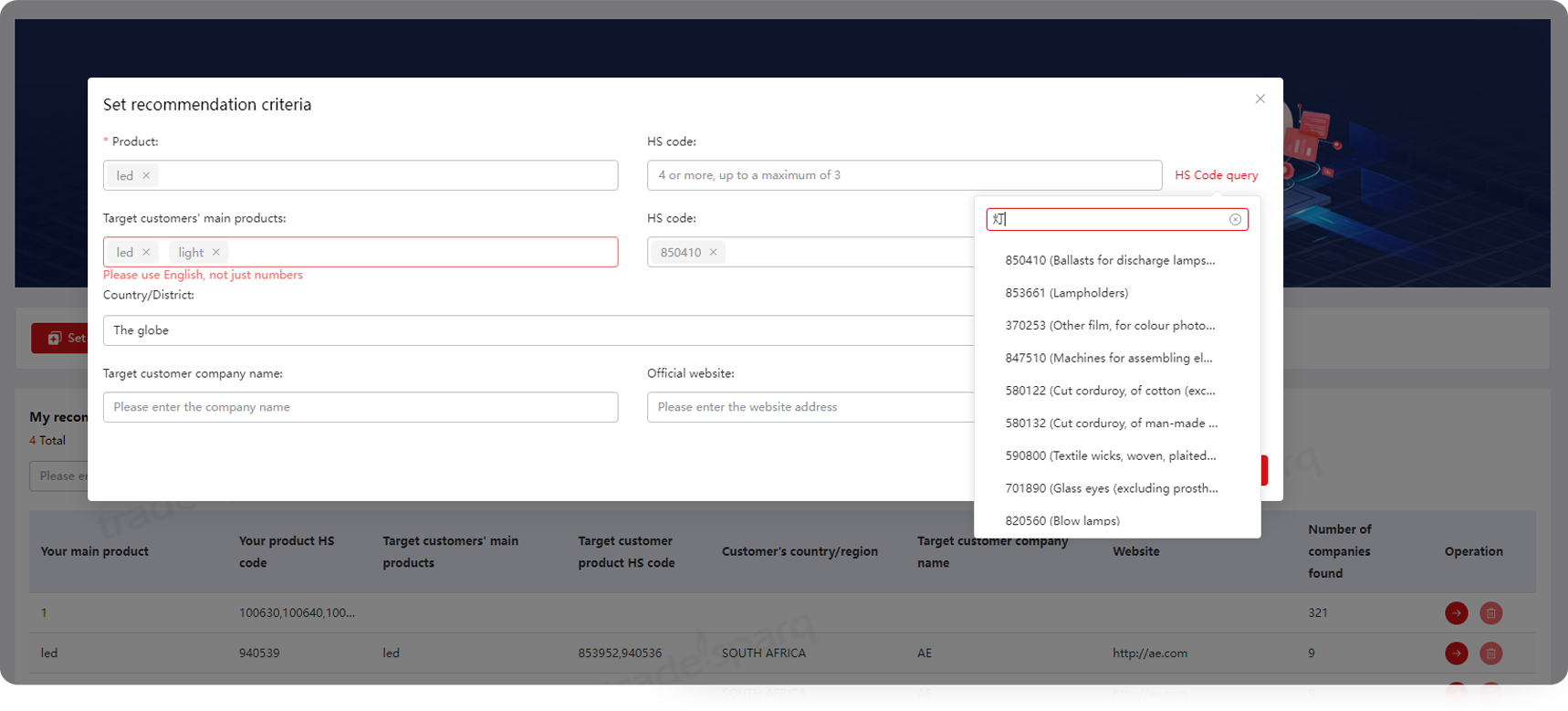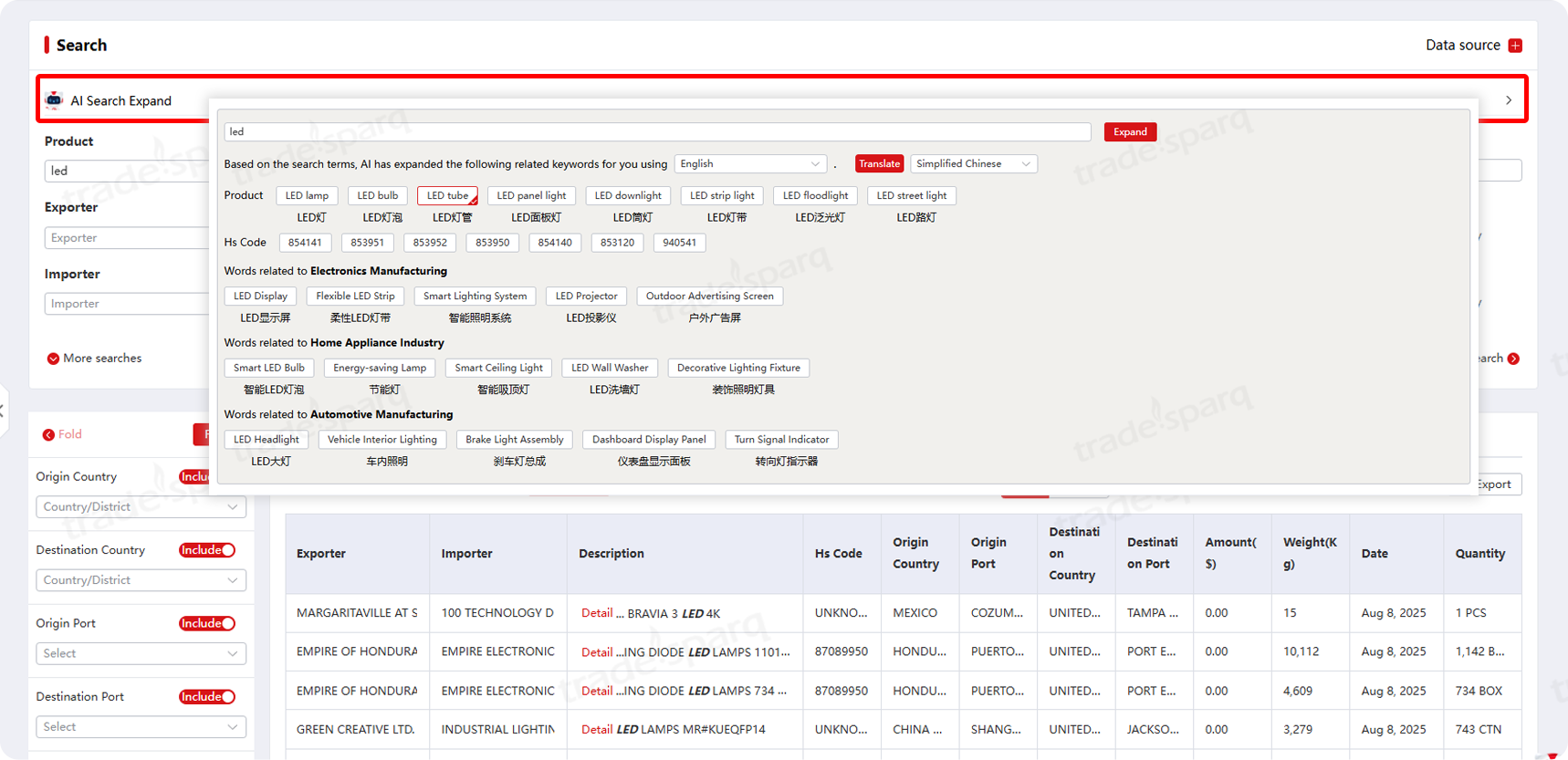 1.AI-Expanded Keywords for Product/HS-Code Search: